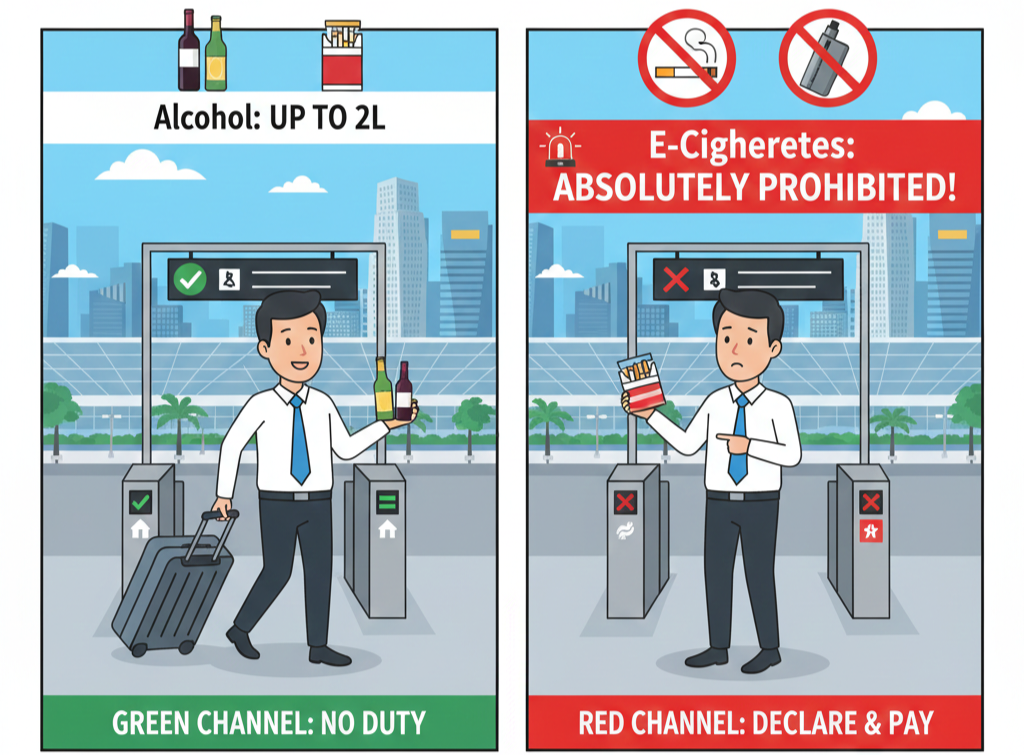 • 申告方法: 枠を超える場合は、空港の「Customs@SG」アプリや税関カウンター(預け入れ荷物を受け取った直後の赤色の出口)で事前に納税します。